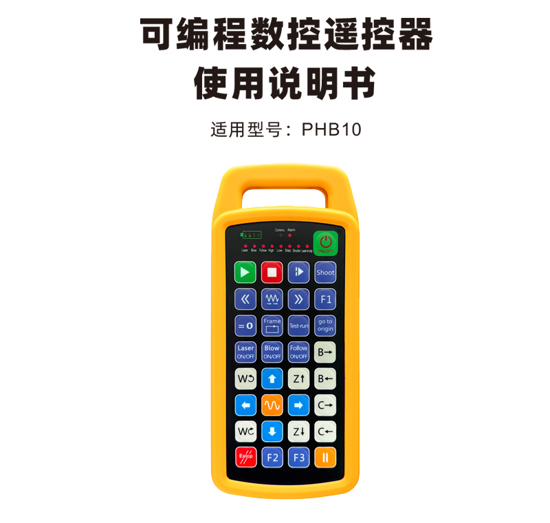 可编程数控遥控器PHB10适用于各种数控系统的无线遥控操作支持用户 自定义编程开发按键功能实现数控系统上各种功能远程遥控支持用户自定 义编程开发LED灯点亮和熄灭实现动态显示系统状态遥控器自带充电电池支持Type-C接口充电