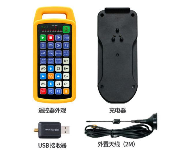 Programabilni bežični daljinski upravljač sastoji se od dva dijela:遥控器+USB接收器+外置天线+充电器